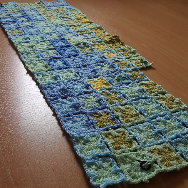Now this project is getting put on hold again! I think I had a single days break between commissions :D Tonight I've been planning my next two baby blankets, I've already picked out colours and checked with the clients, and tonight I made sure I had enough of all the required colours, made a list of colours I'm short on and gathered everything up into a new 'project bag' - I even made a start on one of the two! Sadly you won't be getting any photos of these two until they are complete and in the hands of their new owners :P One of the two is using a very nice colour scheme that I haven't used before, that will be fun :)